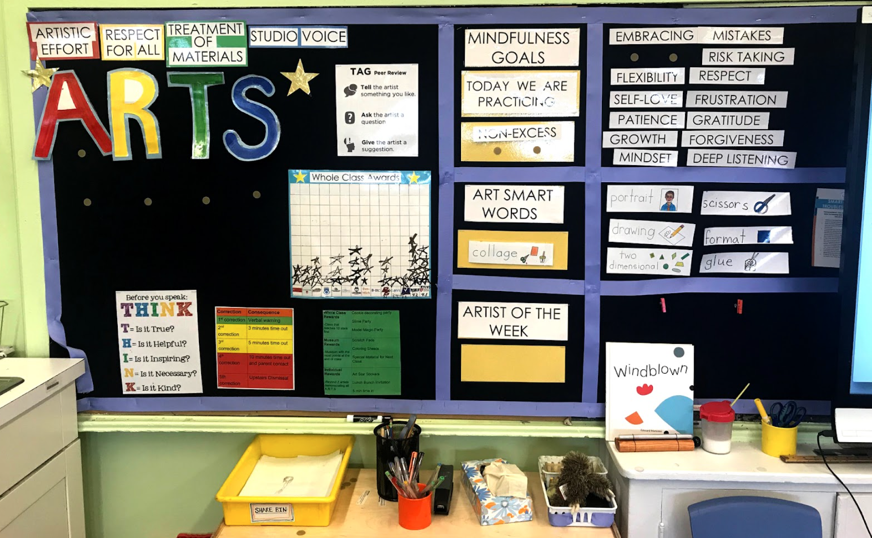 Classroom photo: Mindfulness practices are embedded in every unit. Students practice a Mindfulness goal that corresponds to the material or theme being explored.